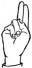 На ћирилици написано ДУЊА СИКИРАШ састоји се из 11 слова [?]. Исписано ћириличном једноручном азбуком за глувонеме: